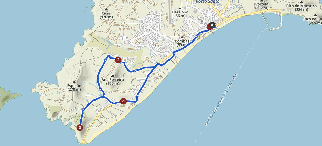 Denna pittoreska cykeltur börjar vid ditt hotell och tar dig till den sydligaste spetsen av Porto Santo, Calheta. Därifrån fortsätter du längs den förtrollande kusten, som sträcker sig hela vägen till Porto Santos hamnpromenad. Det är en behaglig tur med jämna vägar, utan branta backar eller utmanande terräng.