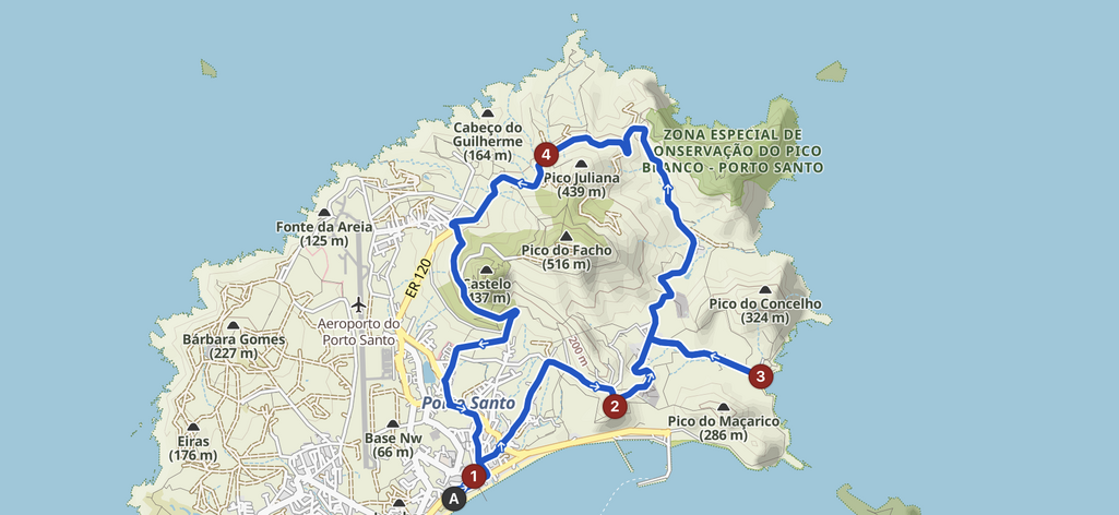 Vi vandrer fra Hotel Vila Baleira og ned på sørsiden av Porto Santo. Her skal vi vandre opp fjellet til vi kommer til et helt spesielt utsiktspunkt. Her vil vi få en fantastisk utsikt over kalkøyene, Porto Santos 9 km lange strand og mer! På veien kommer vi også helt nær klippene og ser flere av de skjulte perlene på Porto Santos sørside.