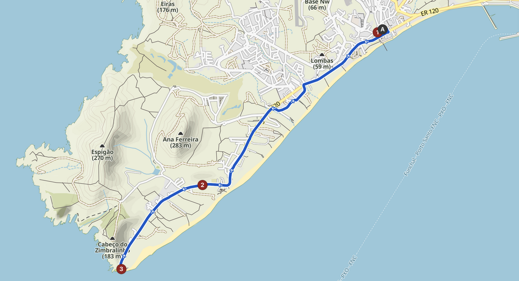 Under vägen kommer du att bli förtrollad av det kristallklara vattnet och de gyllene sandstränderna som kännetecknar Porto Santos kust. Du passerar charmiga fiskebyar och små vikar som inbjuder till en avkopplande paus och kanske ett uppfriskande dopp.