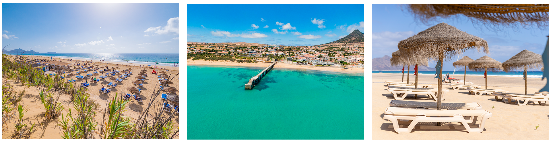 Porto Santo är känd som den lilla gyllene portugisiska ön mitt i det stora blå Atlanten. En 9 kilometer lång vacker strand med sammetslen sand sträcker sig längs hela södra kusten av ön. Stranden har vunnit priser som en av Europas bästa på grund av den mjuka sanden och dess helande effekt, renheten i vattnet och inte minst platsens speciella lugn och skönhet.