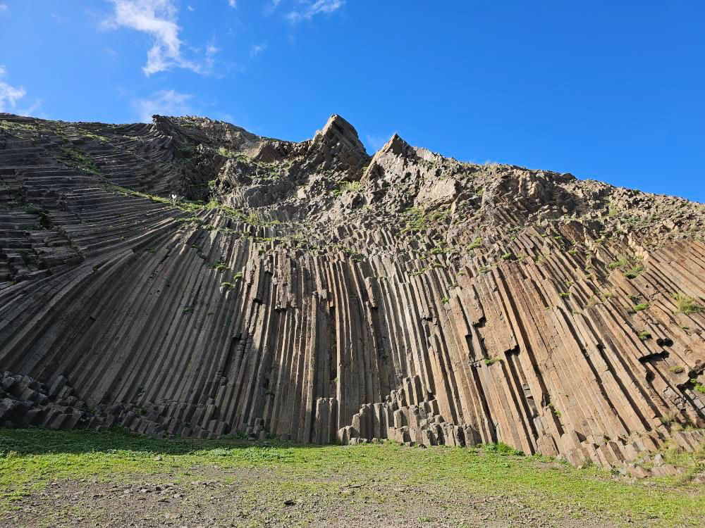 Vi går från Hotel Vila Baleira mot berget Pico de Ana Ferreira, som är känt för ett helt extraordinärt bergfenomen. Det består av olika prismatiska pelare som har bildats av lava från den tid då berget skapades av en underjordisk vulkan för flera miljoner år sedan. Vi kommer att gå cirka 200 meter upp i berget, och vi kommer därför att få en fantastisk utsikt över bland annat den berömda golfbanan i Porto Santo.