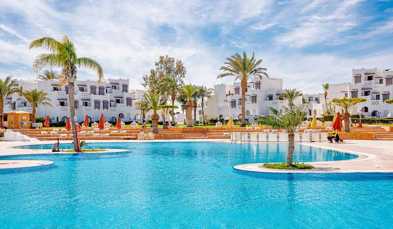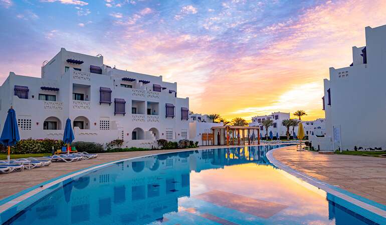 Makadi Bay är det perfekta valet för en avkopplande strandsemester vid havet, bara 30 kilometer söder om Hurghada. Här kan du bo direkt på stranden och njuta av den lugna atmosfären, oavsett om du reser med eller utan barn. Till skillnad från Hurghada erbjuder Makadi Bay fantastiska snorklingsmöjligheter direkt på stranden med imponerande korallrev, så passa på att utforska den fantastiska undervattensvärlden.