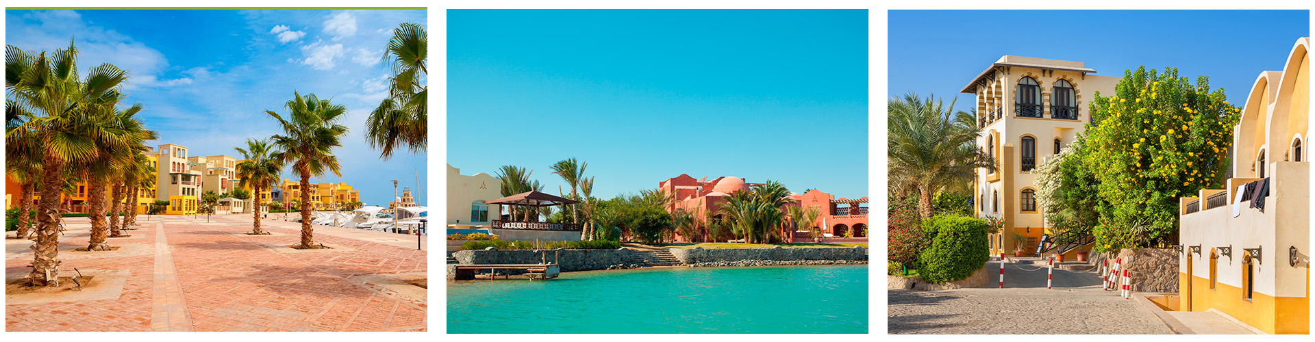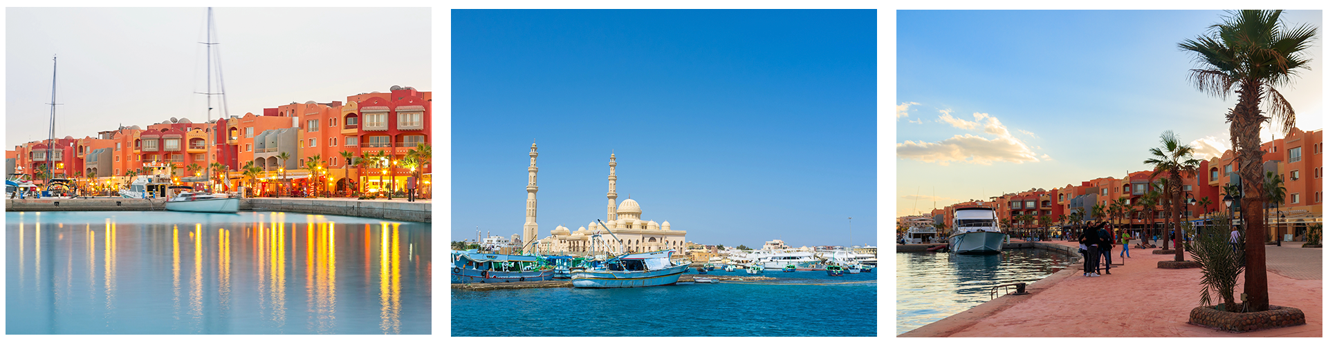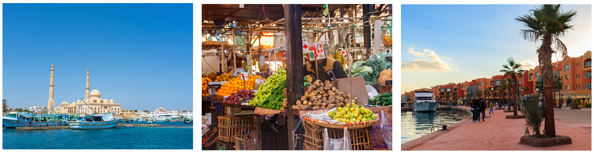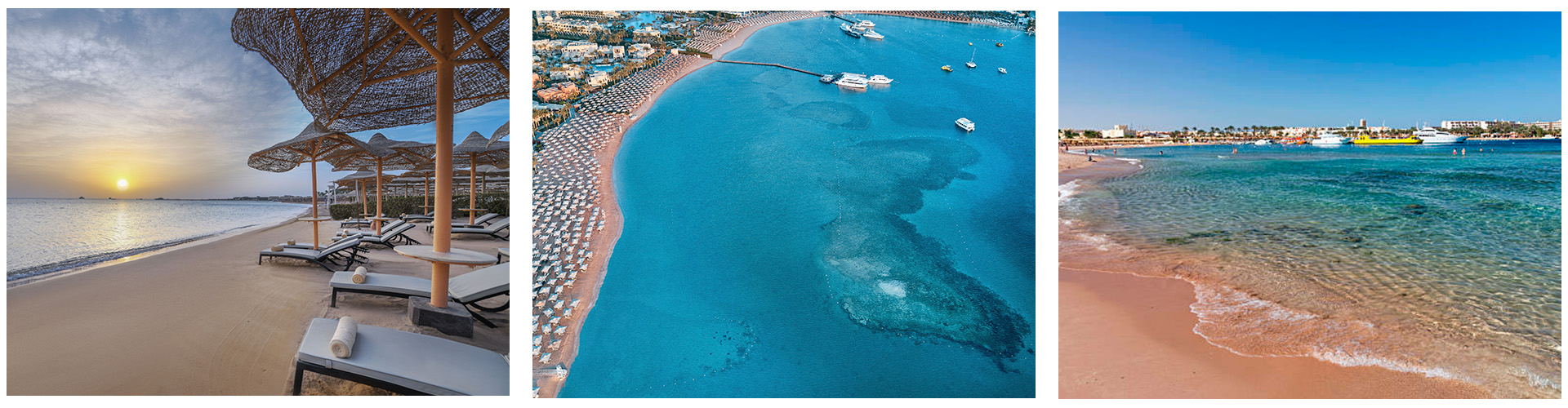 Den tidigare fiskebyn Hurghada har utvecklats till en av Röda havets ledande turiststäder med ett pulserande stadsliv och ett rikt kulturarv. Stadskärnan omges av flera kustområden, bland annat Makadi Bay, Sahl Hasheesh och El Gouna, som erbjuder ett brett utbud av semesterupplevelser.