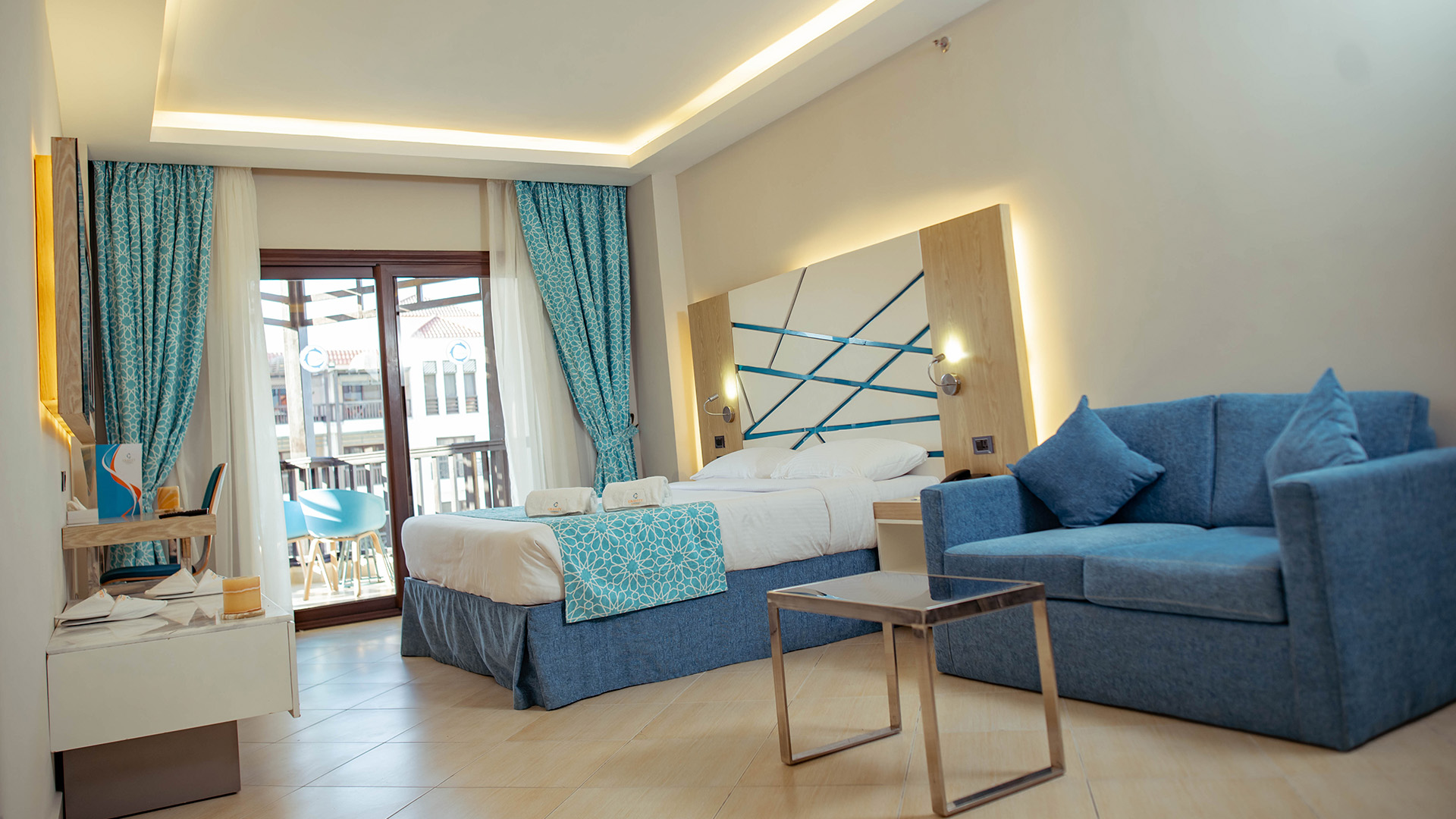 Hotellet ligger på stranden, så hela familjen kan njuta av en solsemester med ett brett utbud av aktiviteter för alla. Njut av avkopplande timmar i solen eller ha kul i poolen och vattenparken.