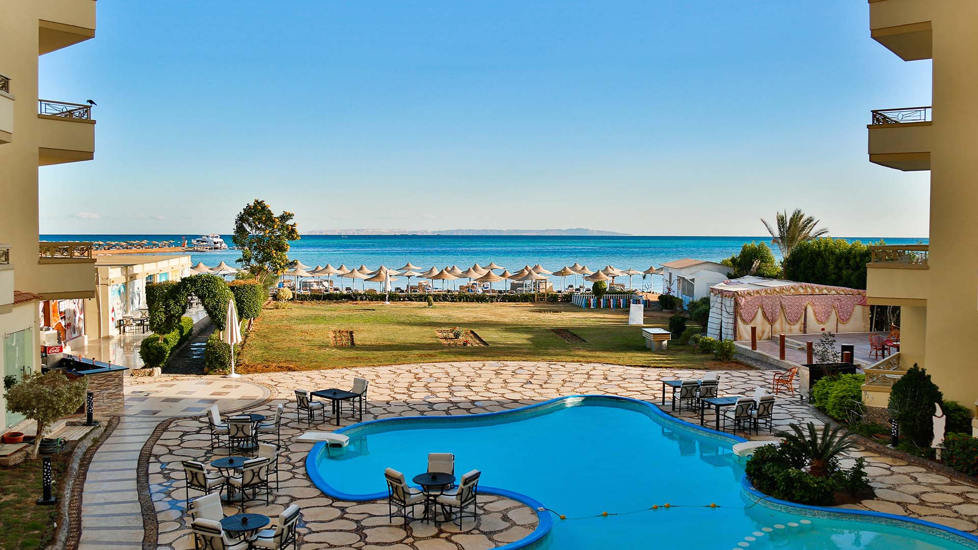 Strand på hotellets område