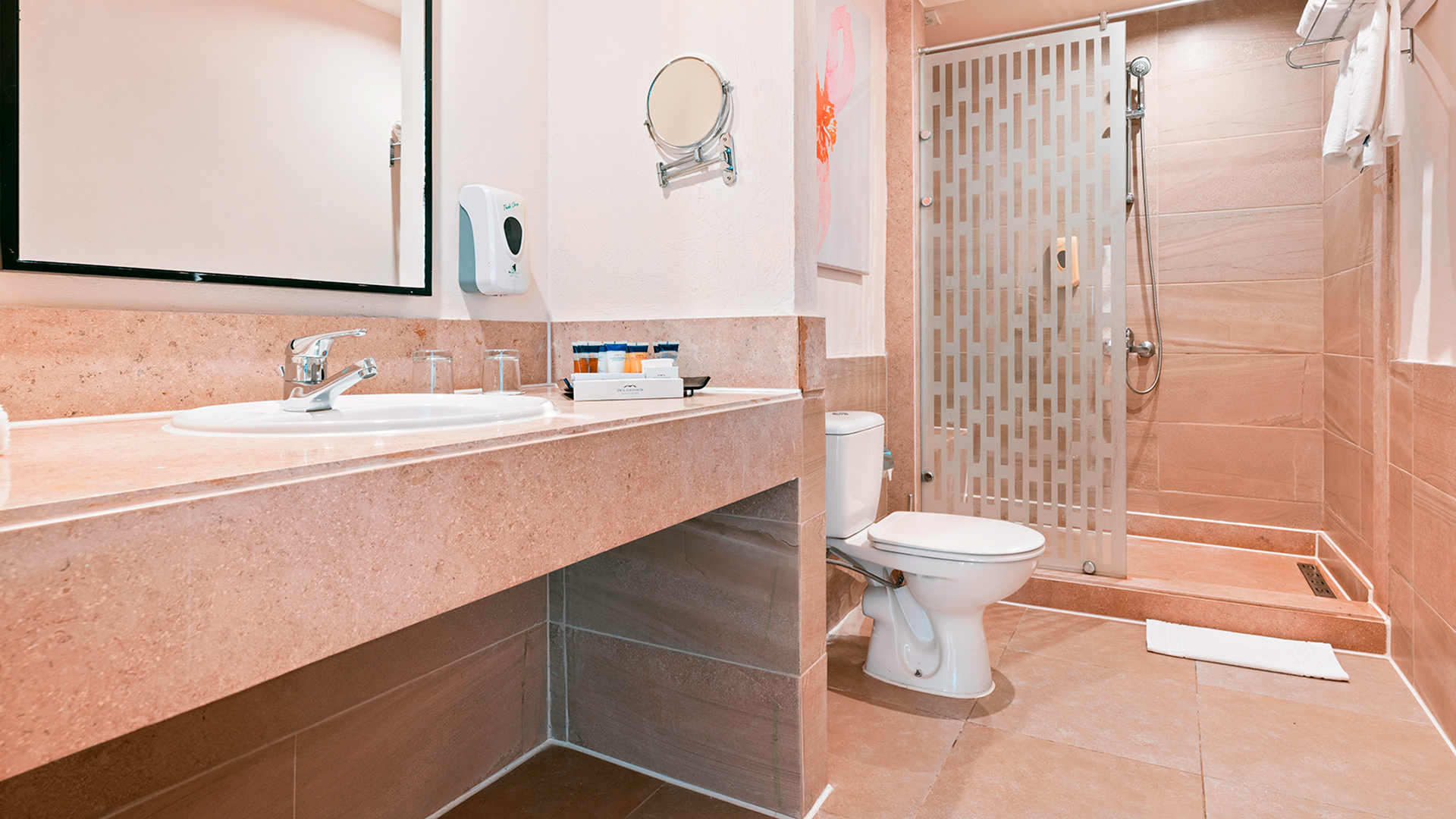 Hotellet ligger i relativt platt terräng, men det är ett stort hotell med flera trappor. Det finns tillgängliga rum på begäran.