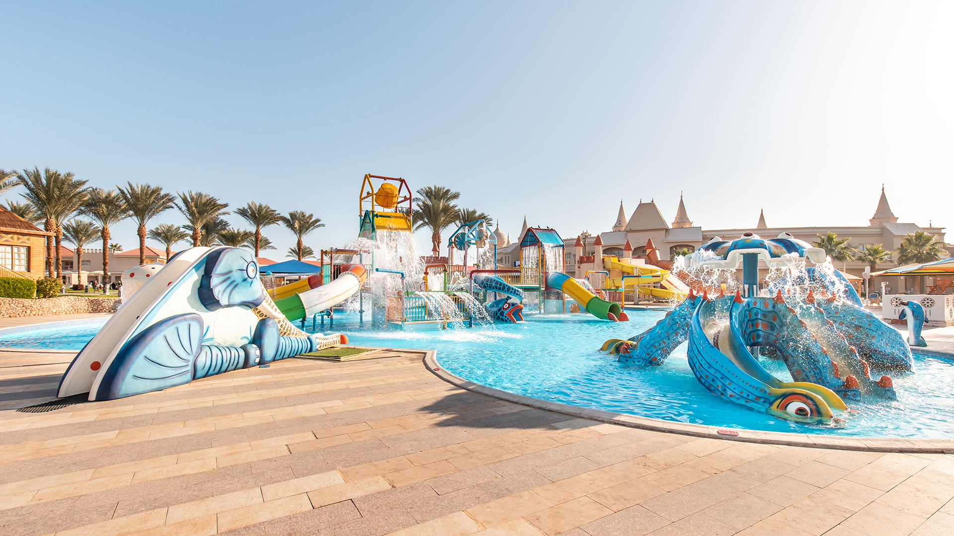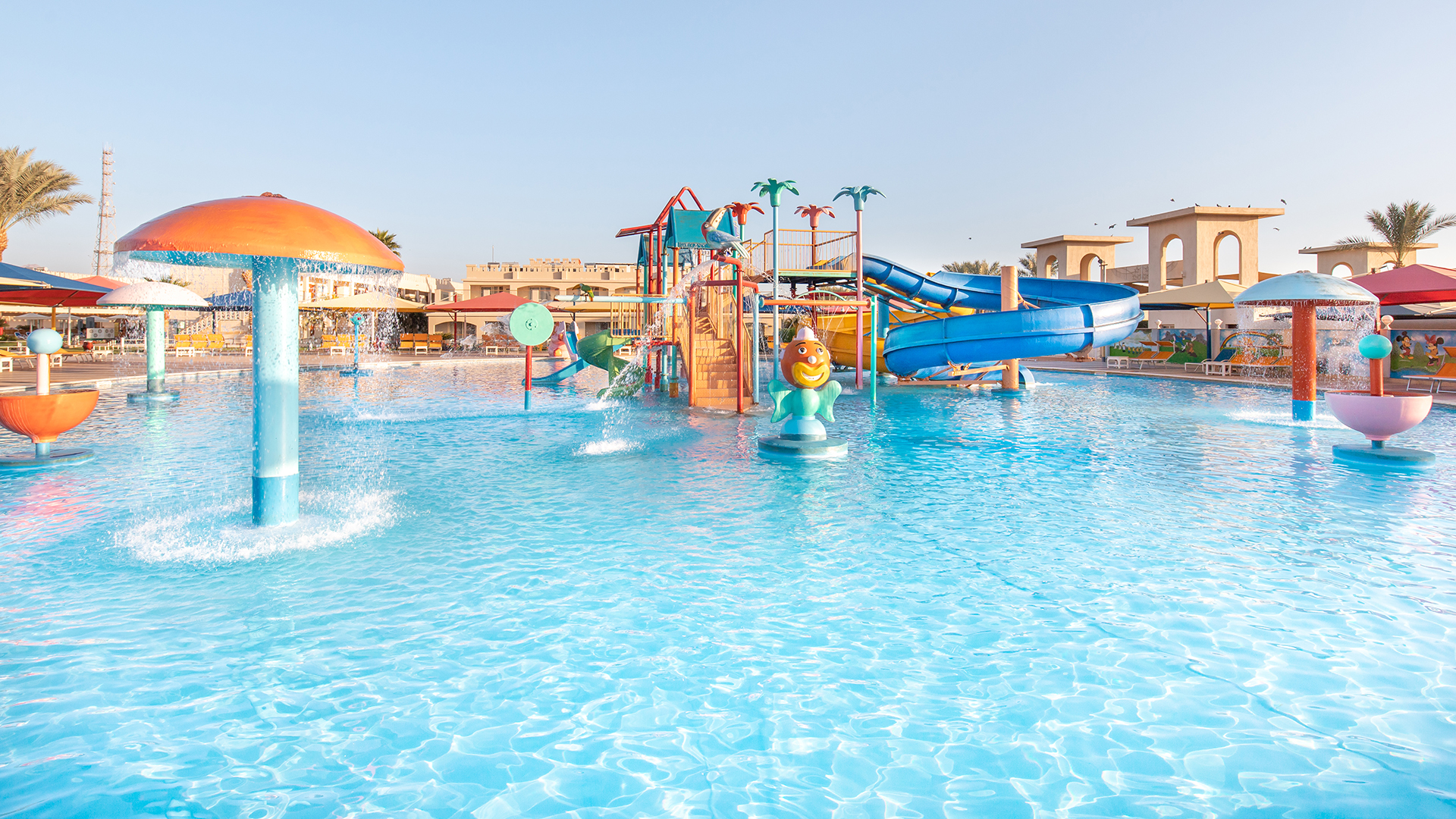 10 barnpooler, varav 3 med vattenrutschbanor.
