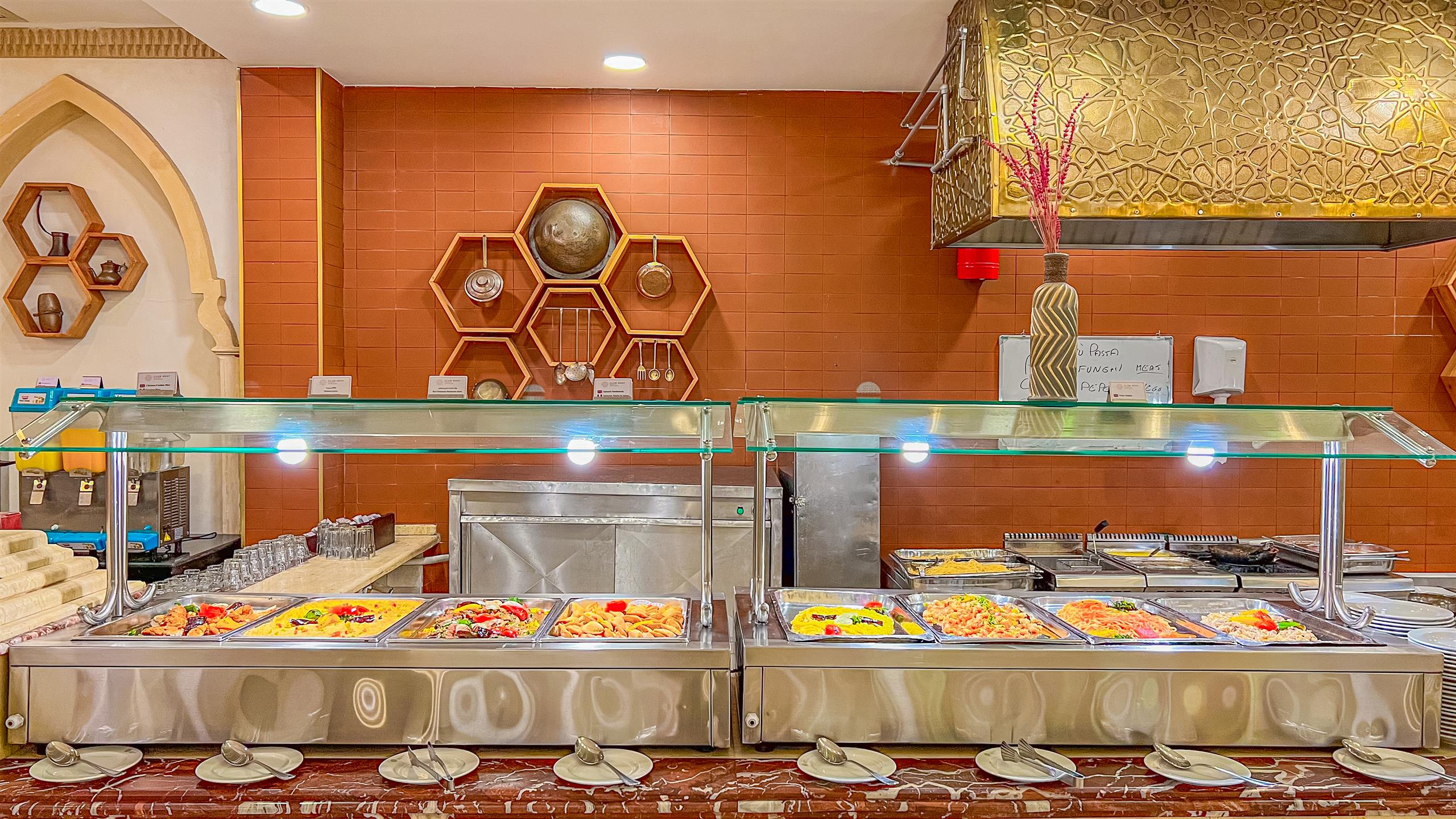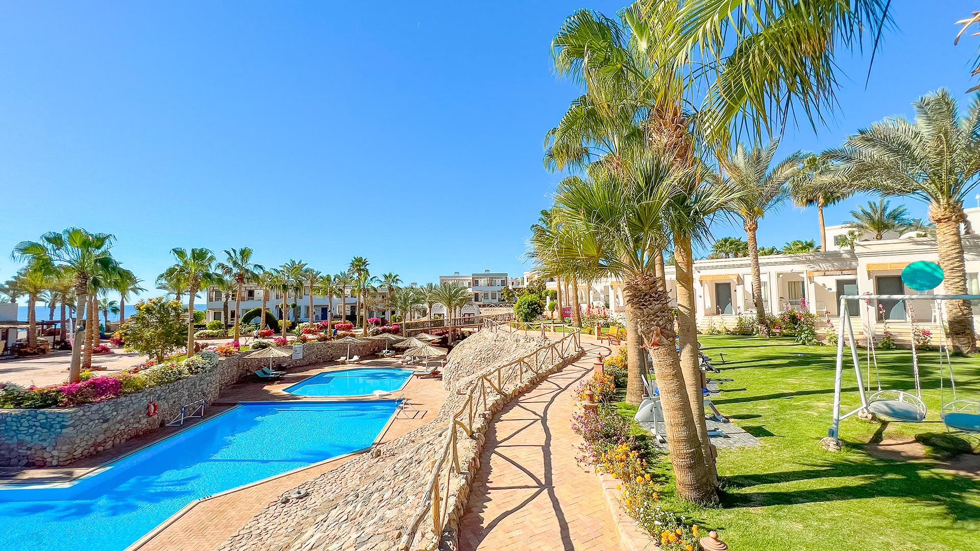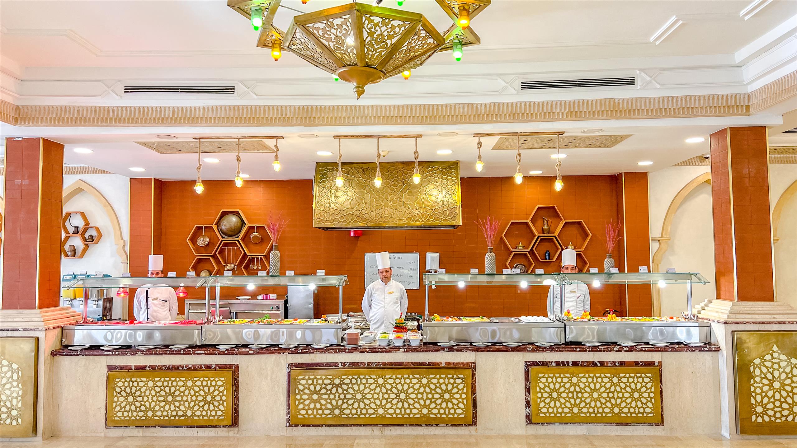 Välkommen till Club Reef Hotel - arabisk stil och utmärkta snorklingsförhållanden Hotellet är idealiskt beläget i Hadaba, med direkt tillgång till den privata stranden och utsikt över det glittrande Röda havet. Ett charmigt hotell med orientalisk känsla och faciliteter för både par och familjer i en avslappnad atmosfär. Club Reef Hotel har ett stort och unikt hotellområde med vackra trädgårdar och stigar. Hotellet har ett stort poolområde som består av tre pooler för vuxna - inklusive en livlig huvudpool med aktiviteter och en lugnare pool för avkoppling. För de små finns en separat barnpool. Om du föredrar hav och sand leder en trappa ner till hotellets privata strand. Här finns solstolar och parasoller på terrasser och du kan simma från bryggan för att utforska det färgstarka undervattenslivet. Hotellet erbjuder mysiga och roliga upplevelser för gäster i alla åldrar. Det finns daglig underhållning både dag- och kvällstid, med allt från tävlingar till meditationsövningar. Dessutom har hotellet faciliteter som beachvolleyboll och bordtennis, eller vad sägs om en avkopplande upplevelse i det lilla spaområdet? Din vistelse på Club Reef Hotel är All Inclusive och inkluderar måltider i buffé- och à la carte-restaurangerna samt snacks och drycker i hotellets barer. Läs mer under ”Mat och dryck”.  På hemresedagen måste du checka ut från ditt rum och lämna tillbaka nyckeln i receptionen senast kl. 12.00.Detta gäller även om du har ett flyg som avgår senare på dagen.   Anläggningar Avstånd  Strand/pool  Restauranger/Barer  Tillgång till internet  Barnen Aktiviteter  Övriga faciliteter Green Star-certifierat hotell***    Rum  Standardrum för 1-3 personer Faciliteter (alla rum)    Mat och dryck Din vistelse på Club Reef Hotel är All Inclusive, vilket inkluderar alla måltider i hotellets bufférestaurang samt snacks och drycker i hotellets barer. À la carte-restaurangen ingår en gång per vistelse, efter reservation.  Obs! Mattider och platser kan komma att ändras på grund av ogynnsamma väderförhållanden eller oförutsedda omständigheter.  Tider för måltider  Alcazar Restaurant - bufférestaurang Snackbar vid stranden och Serbal Bar  Poolbar (Aqua Pool)  Layla Restaurant - À la carte   Dryck och dryckesvaror Drycker ingår från 10:00 - 00:00 och serveras endast i glas, inte i flaskor. Lokala drycker ingår: läskedrycker, mineralvatten, varma drycker, lokal öl, rom, brandy, vodka, gin och whisky.  Serbal Bar - 09:00 - 23:00   Medicinsk rådgivning Faciliteter för personer med nedsatt rörlighet