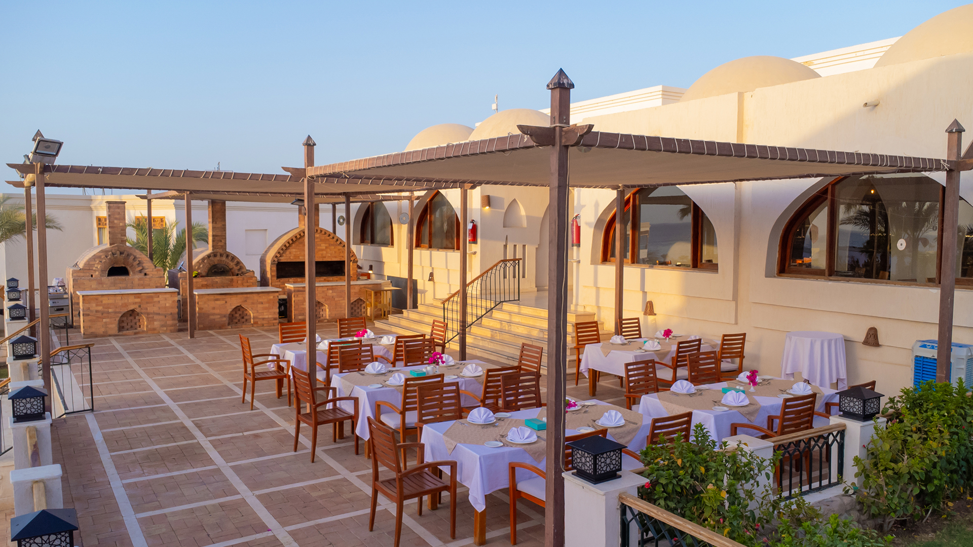Bordsbokning krävs och måste göras i receptionen minst en dag i förväg, mellan kl. 10.00 och 13.00. Välj rätter från en utvald meny med fisk och skaldjur, grillade rätter, hamburgare och italiensk pizza.
