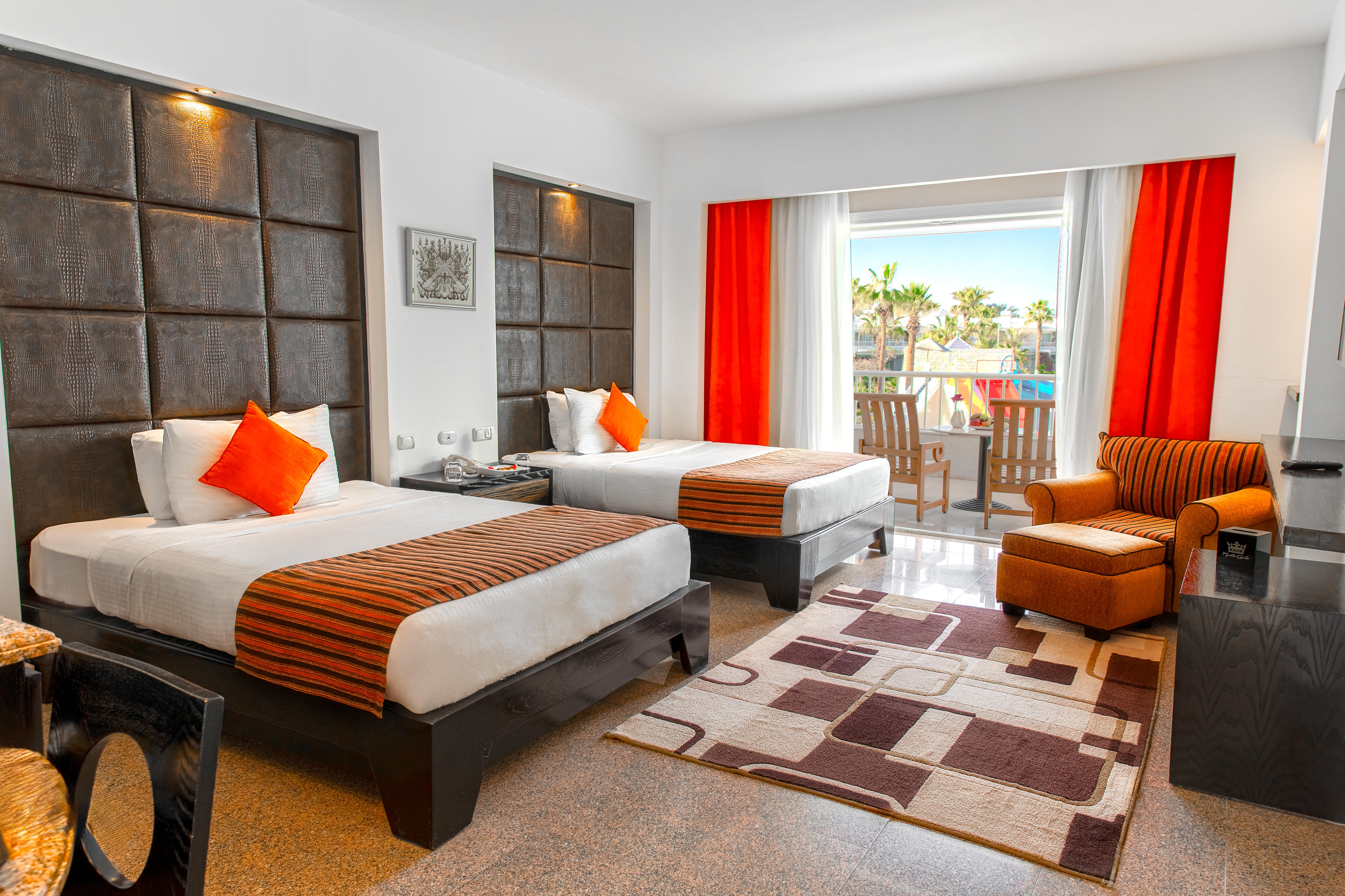 Välj mellan en king size-säng eller två queen size-sängar med bekväma madrasser, täcken och fyra kuddar. Rymligt badrum med dusch, badkar och badrockar. Stor LED-TV och gratis Wi-Fi på rummet. Alla rum har balkong med vacker utsikt över Röda havet.