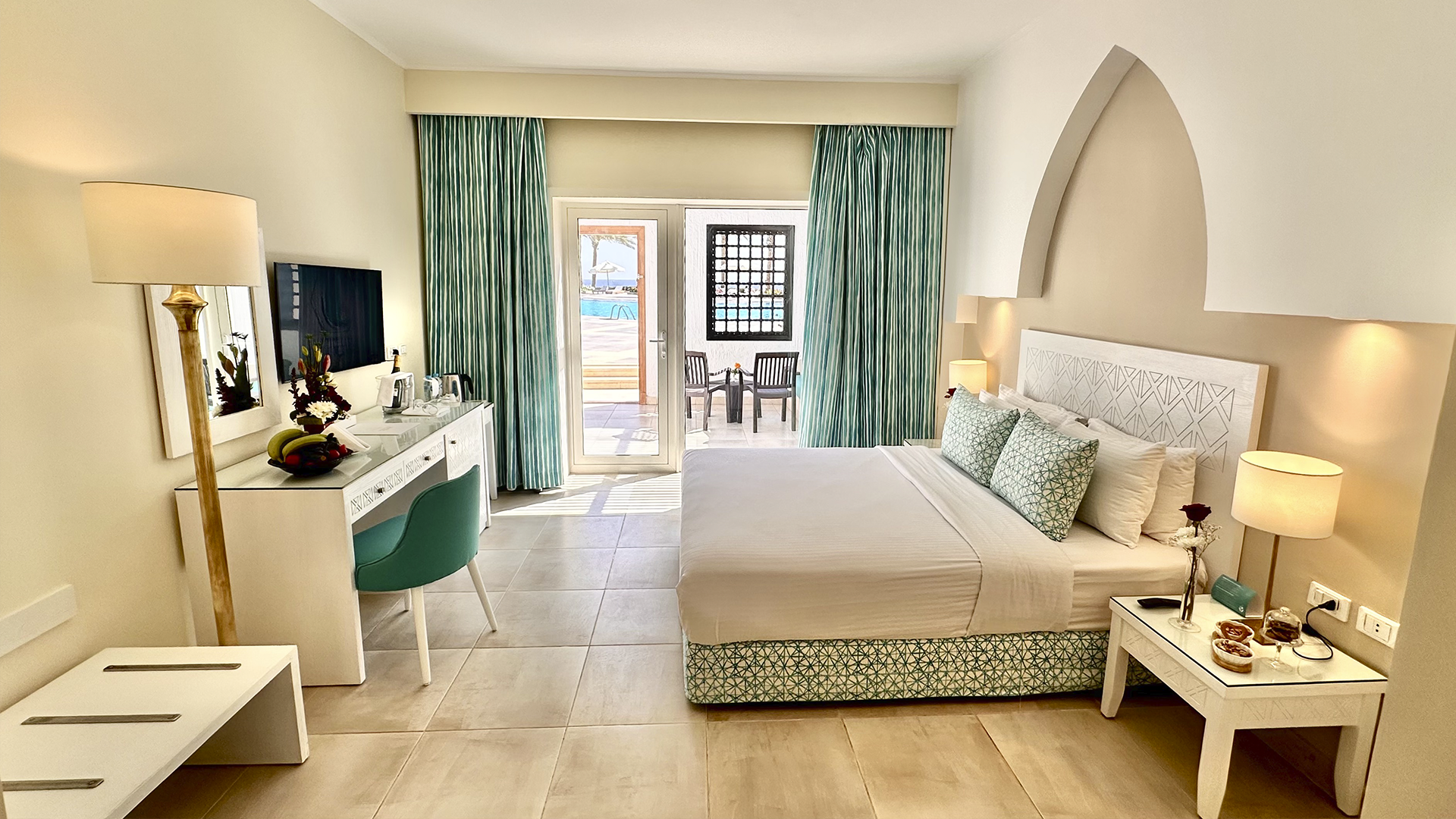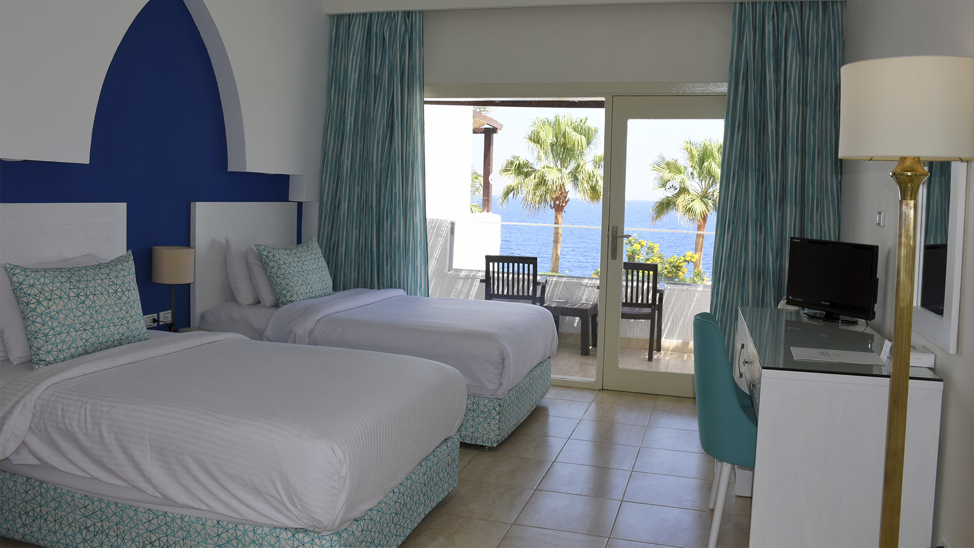 Sharm Club beach Resort har 158 mysiga gästrum, alla med balkong/terrass. Balkongen är inte en vanlig balkong, utan en terrass framför dörren till rummet. Nästan alla rum har antingen trädgårds- eller havsutsikt, men de speciella deluxe-rummen har havsutsikt och en stor solterrass.