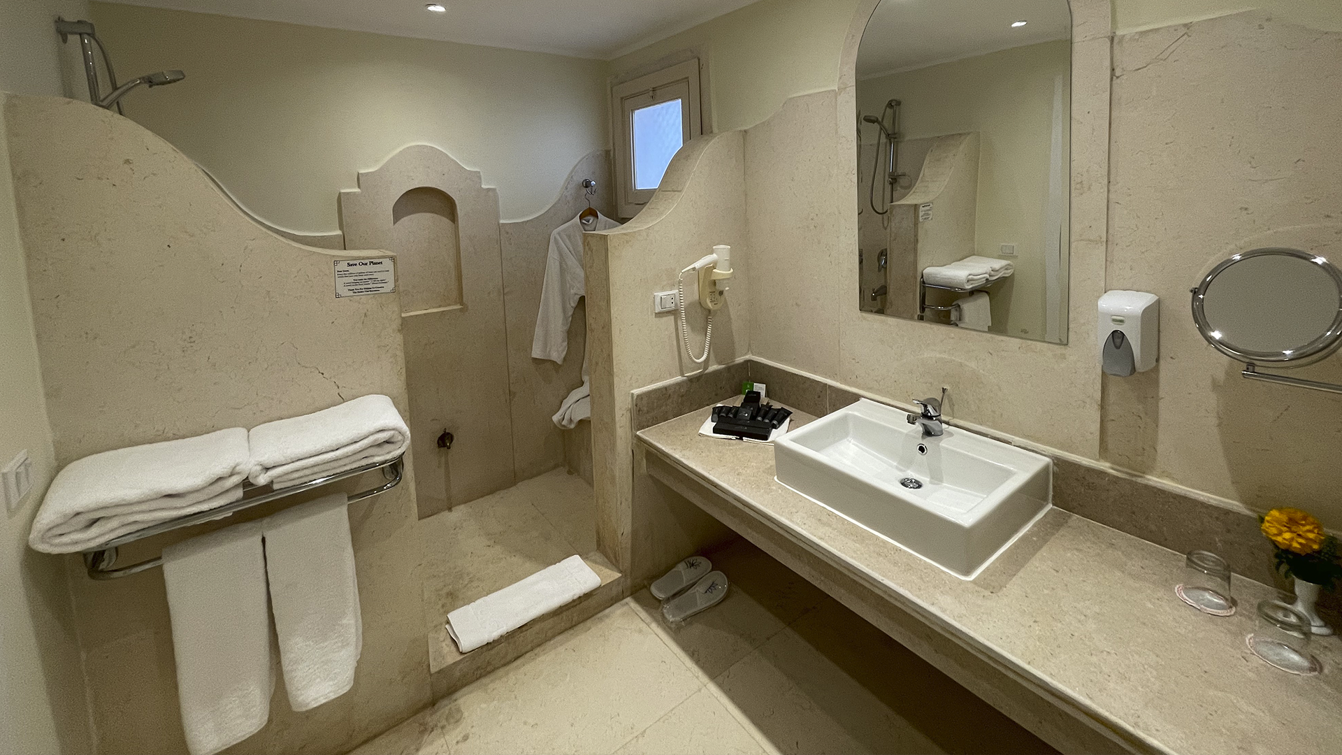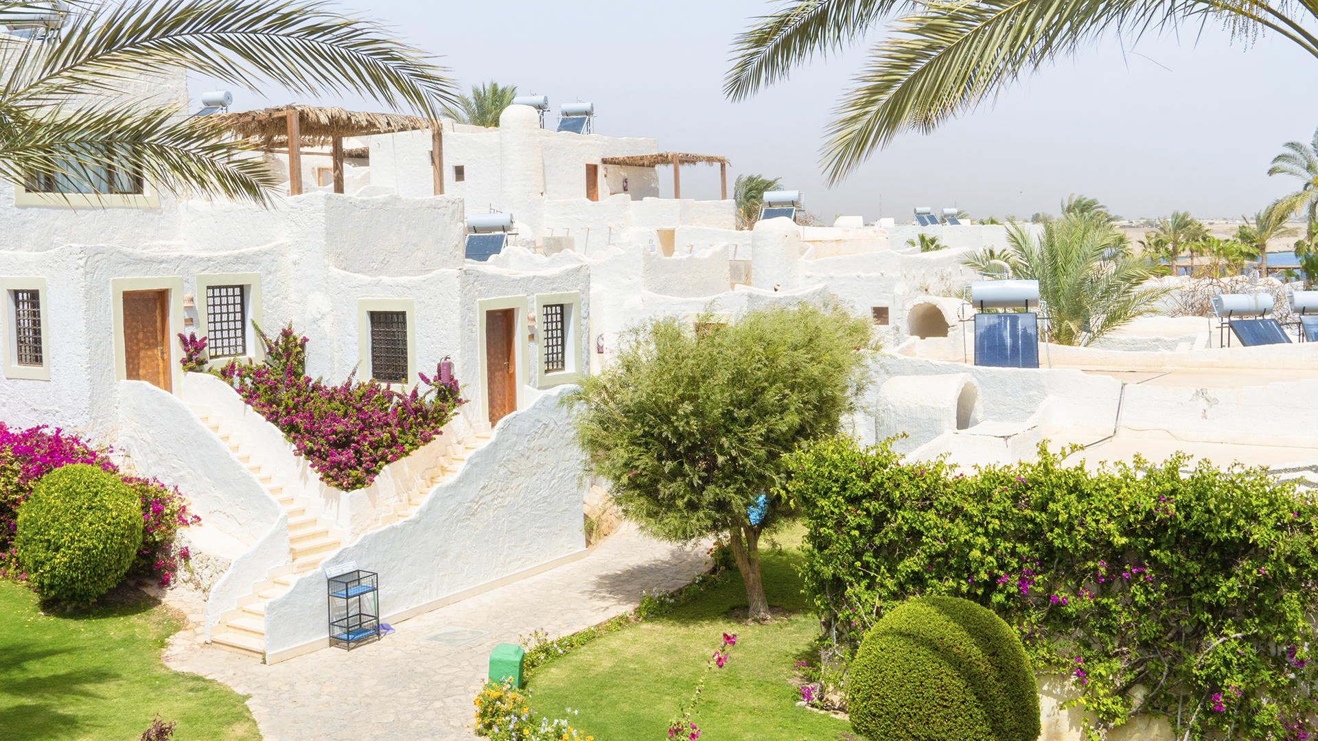 Hotellet ligger i en kuperad terräng med trappor/steg mellan olika nivåer och det finns inga handikappanpassade rum tillgängliga.