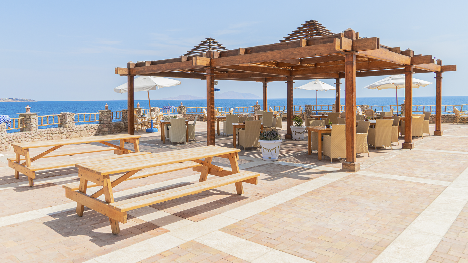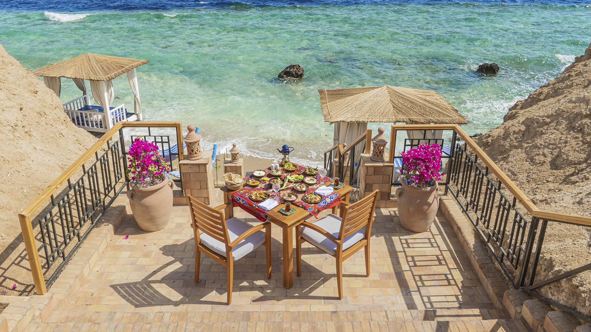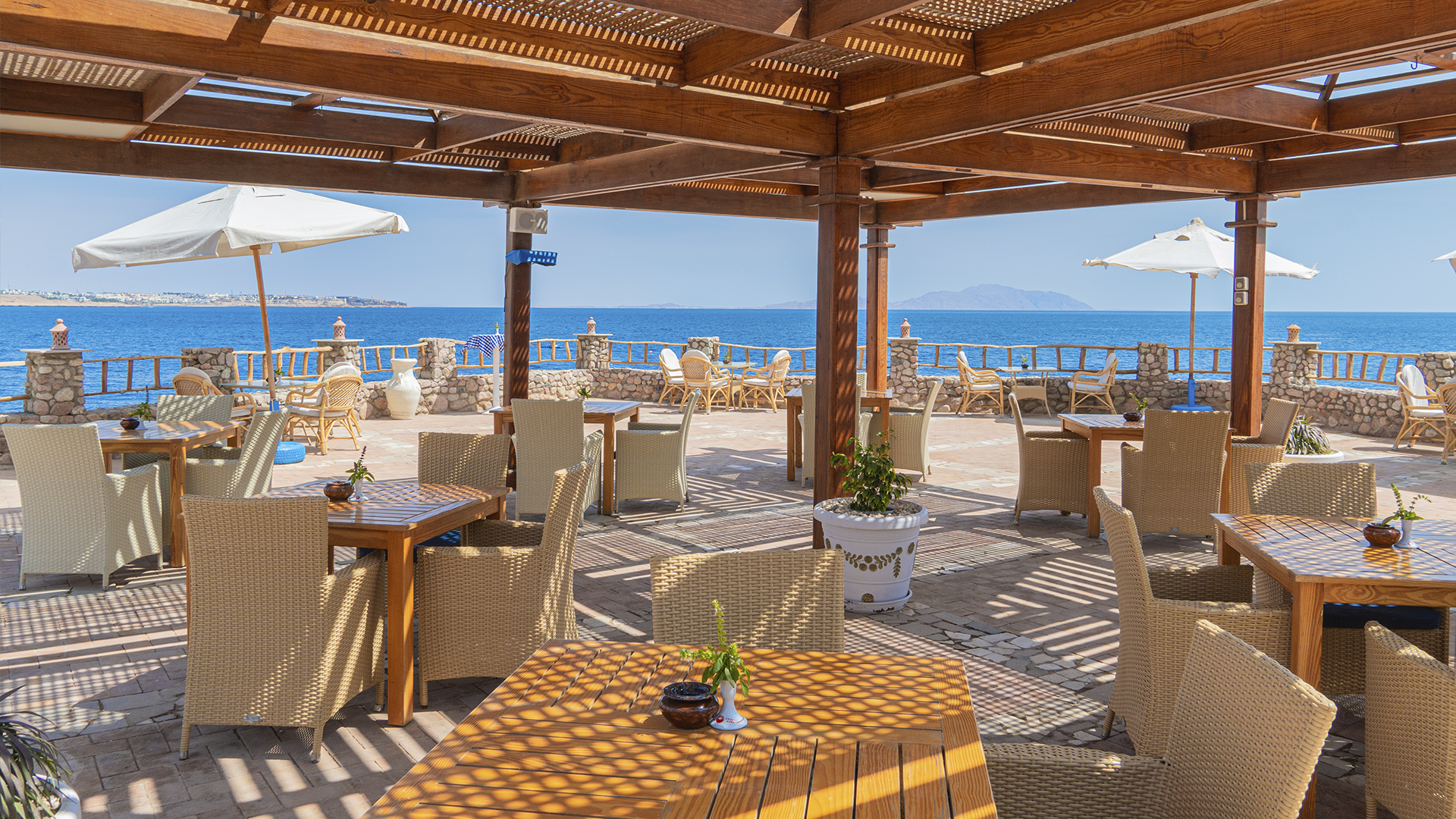 Eftersom hotellet ligger på en kulle är stranden i olika nivåer. Koppla av på solstolen eller få en skön massage medan du njuter av utsikten över havet. Från stranden finns två badbryggor, varav den ena ligger under vattenytan, och från plattformarna är det fantastiska förhållanden för snorkling och dykning - ta på dig dykmasken och utforska de färgglada korallerna och fiskarna.