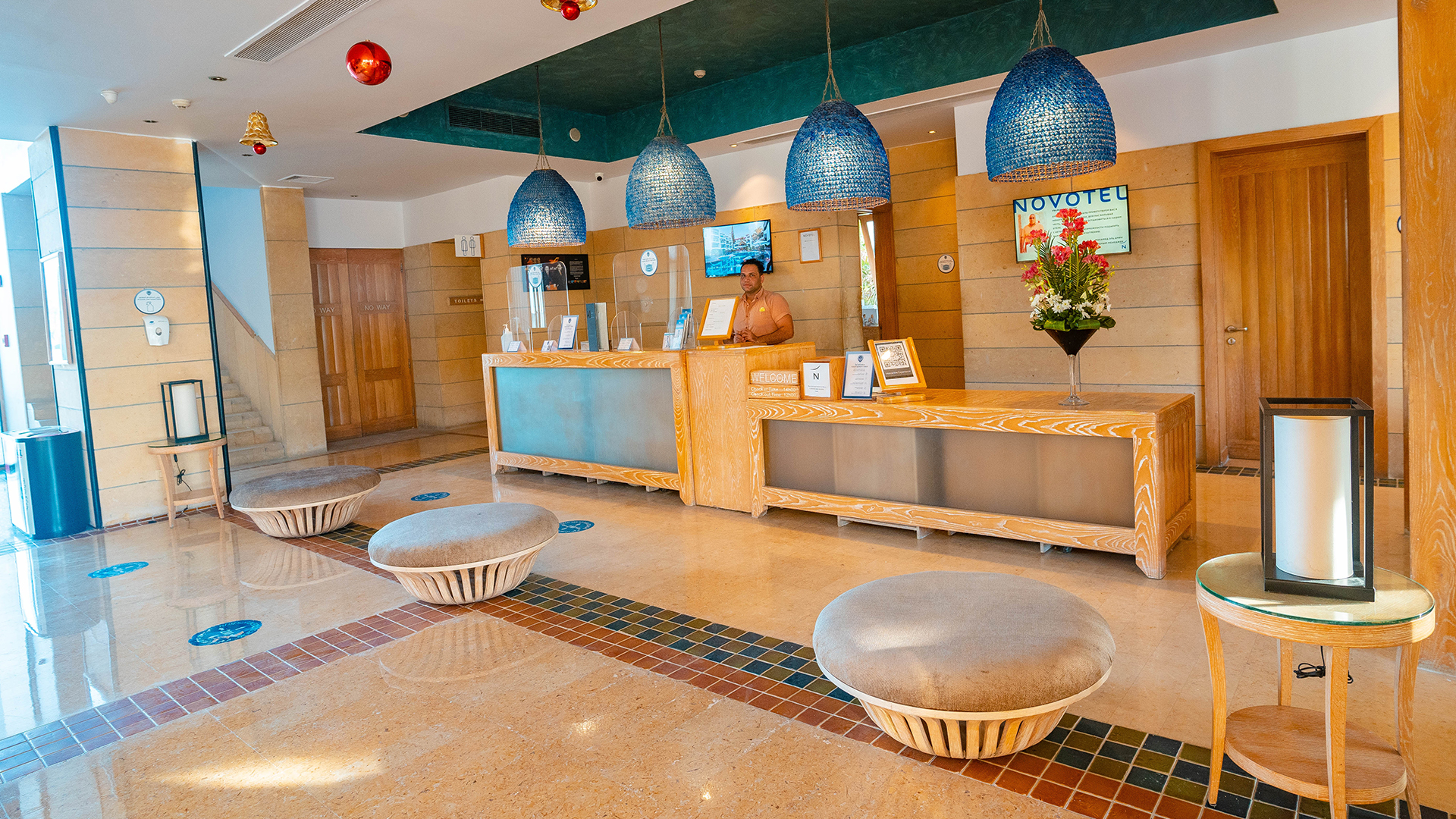 Novotel Beach är centralt beläget vid strandpromenaden i Naama Bay, huvudcentrum i Sharm el Sheikh. Från hotellet är det 5 minuters promenad till centrum där det finns ett bra urval av restauranger, shopping och nattliv.