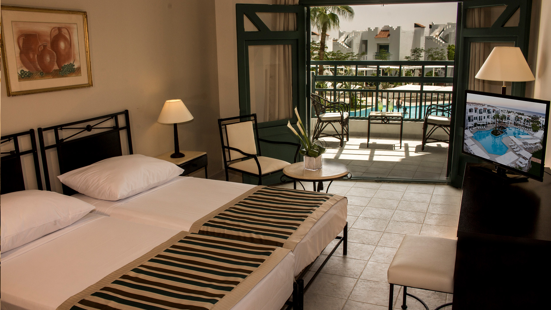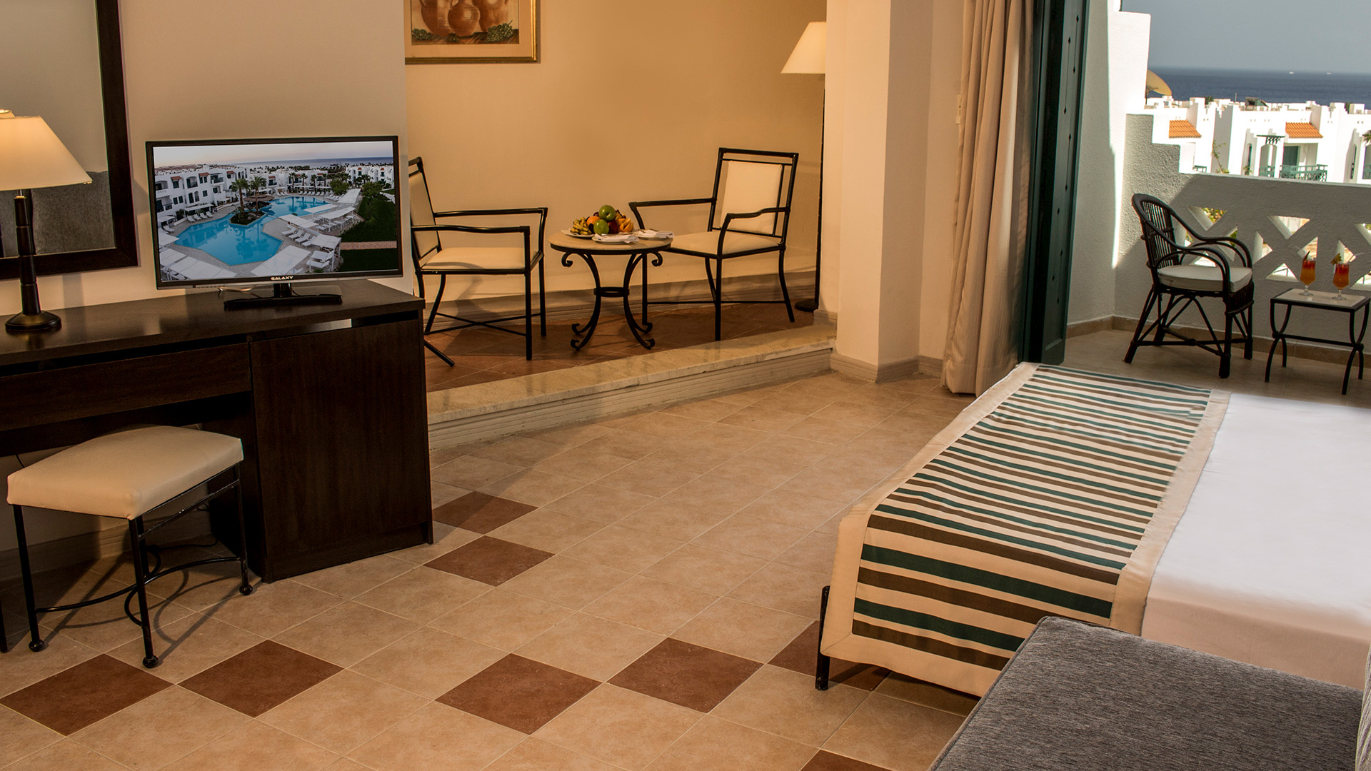 Solymar Naama Bay har eleganta och ljusa rum, alla rumstyper har balkong/terrass