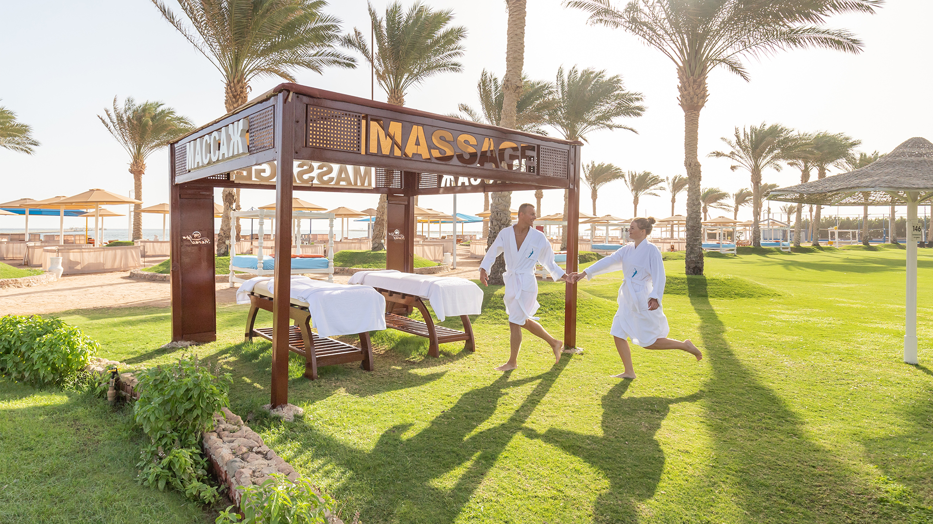 Privat sandstrand med solstolar, parasoller, beachvolleyboll samt dagliga aktiviteter och Beach bar.