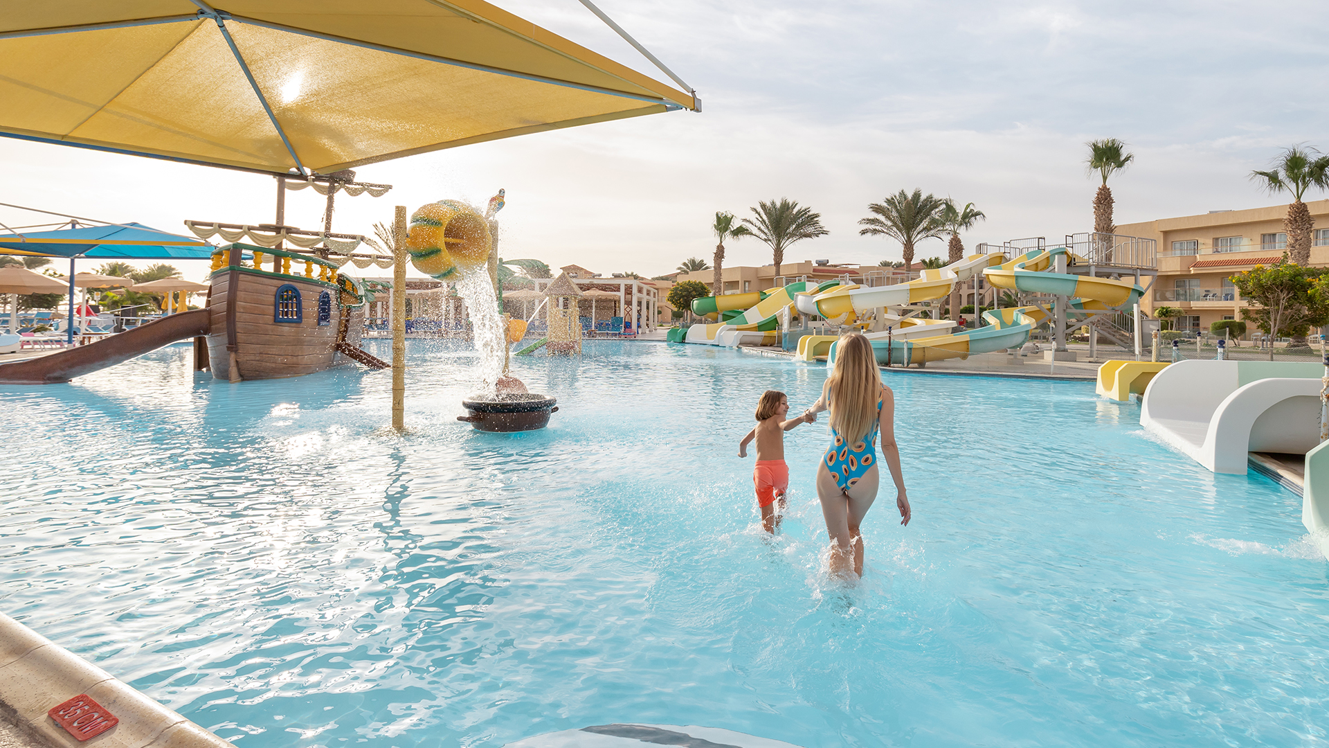 Förutom de många bra utomhusfaciliteterna har hotellet också en stor vattenpark som delas med systerhotellet och som man har tillgång till från hotellets område. Här kan barn i alla åldrar ha det trevligt hela dagen. Kom ihåg att det kan finnas restriktioner för vissa vattenrutschbanor beroende på barnens ålder och längd.