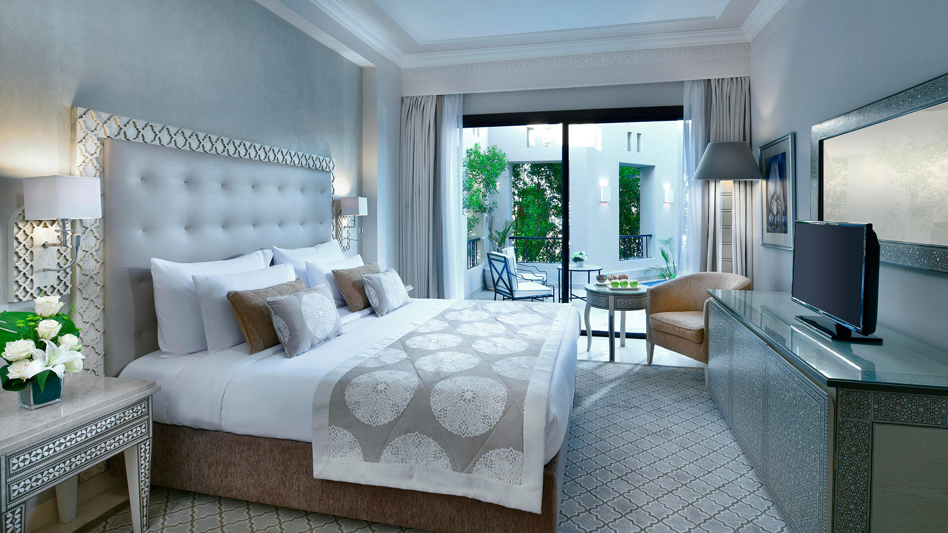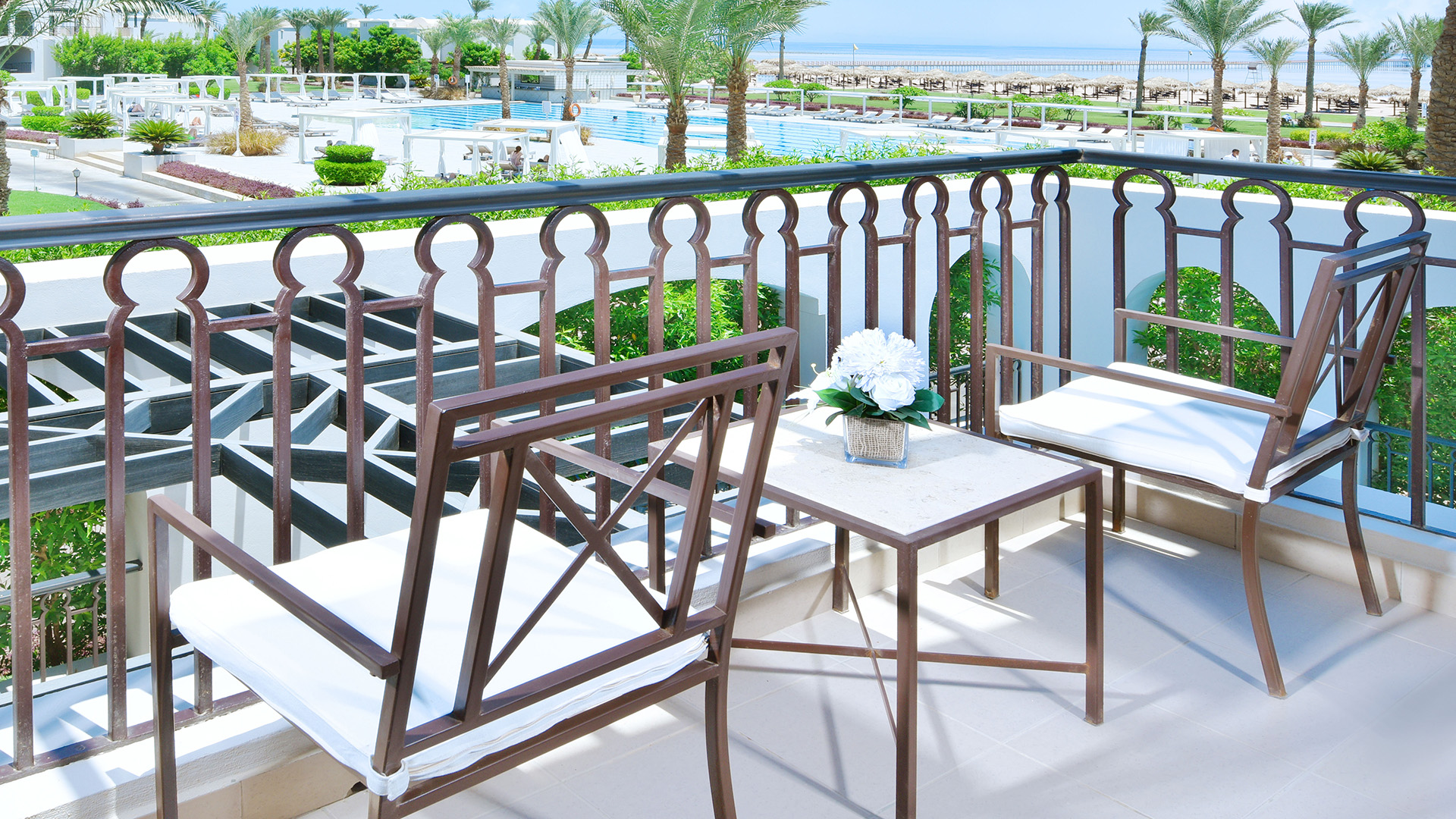 Superior-rum för 2-3 personer Storlek: 46 m2. Rummet har 1 kingsize-säng eller 2 queen-size-sängar. Sittgrupp. Privat badrum med stor dusch och balkong/terrass. Möjlighet till 1 extra säng på rummet av typen Queen Size. Utsikt över trädgården. Utsikt över poolen mot tillägg vid bokning. Med delvis havsutsikt på begäran.