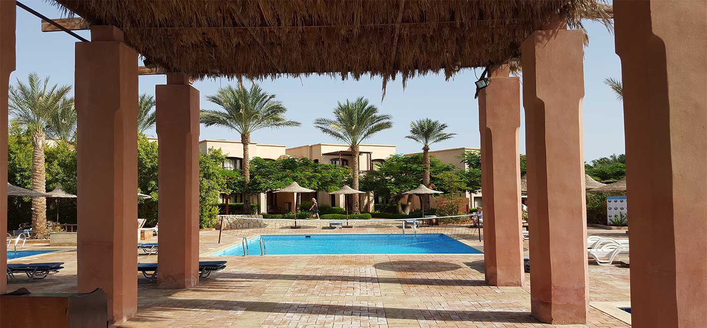 Tamra Beach Resort er et italiensk inspireret hotel der ligger i Nabq med utsikt över Tiranhalvön och på kort avstånd från flygplatsen. Nabq har ett eget centrum med ett bra urval av butiker, restauranger och barer. Som på de flesta platser i Sharm finns här också bra snorklingsförhållanden. Hotellet ligger precis vid stranden i ett stort och grönskande område, där små stigar leder dig från det ena poolområdet till det andra. Det finns trevliga utomhusområden med bra faciliteter för hela familjen. Hotellbyggnaden är utspridd över ett stort område som sträcker sig från receptionen ner till stranden, och den är byggd så att det är bra utsikt från stora delar.