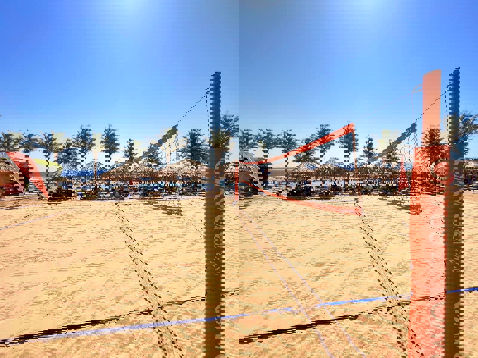 På stranden finns solstolar och parasoller som gästerna fritt kan använda. Det finns en stor sandvolleybollplan och en strandbar som serverar snacks och drinkar. För att komma ner i vattnet och bada går man via bryggan. Eftersom det finns korallstenar i vattnet på de flesta ställen i Sharm är det vanligt med en brygga som tar dig till revets kant. Vattnet är djupare här, och även om man kan flyta bra i Röda havet bör man ha goda simkunskaper för att simma/snorkla här.