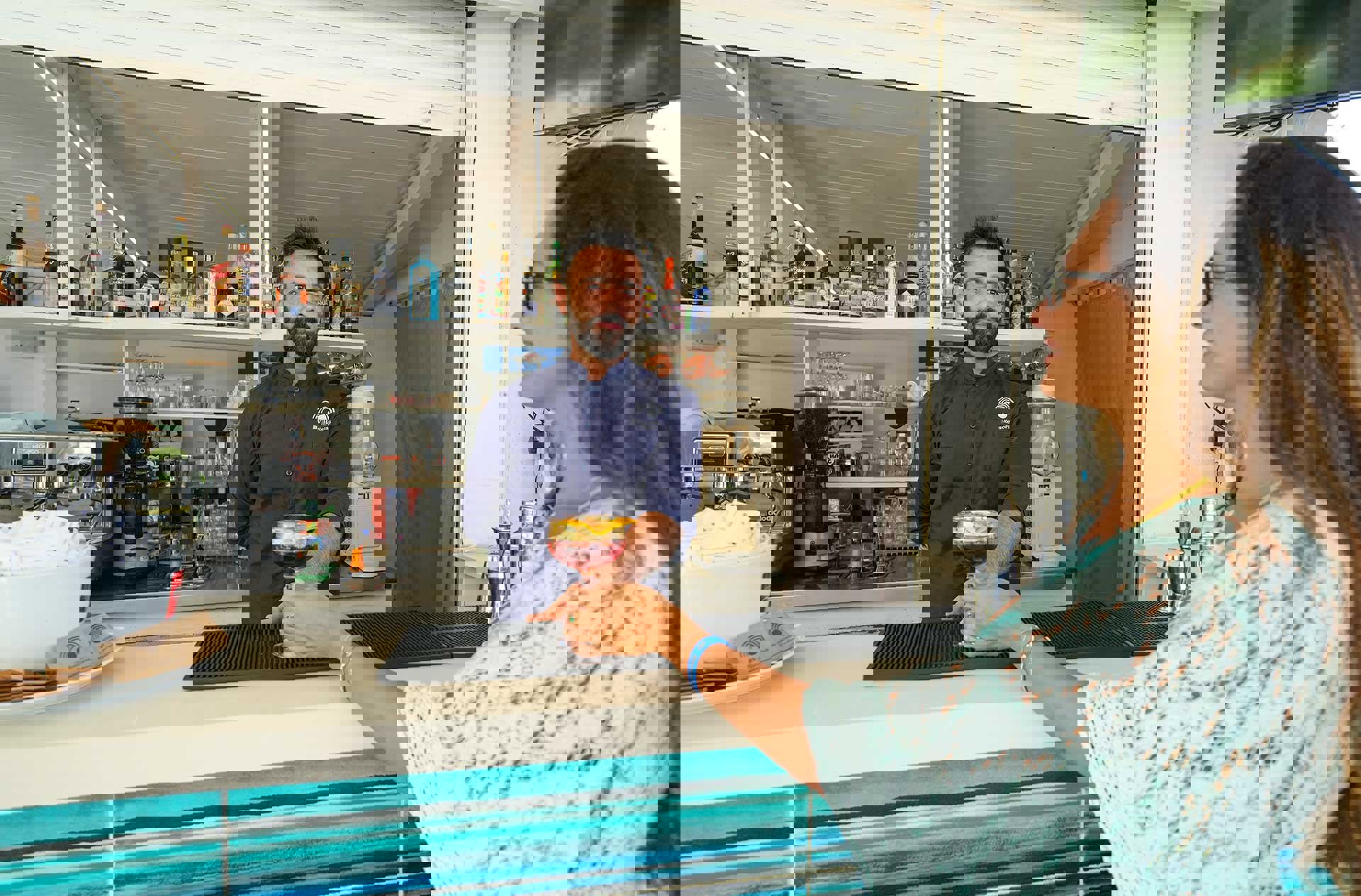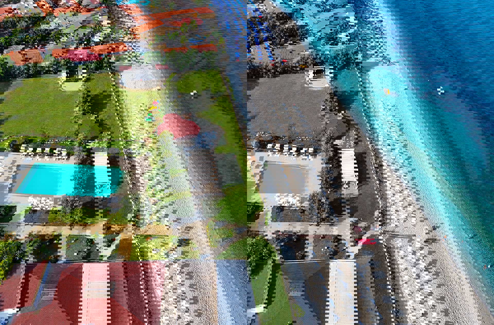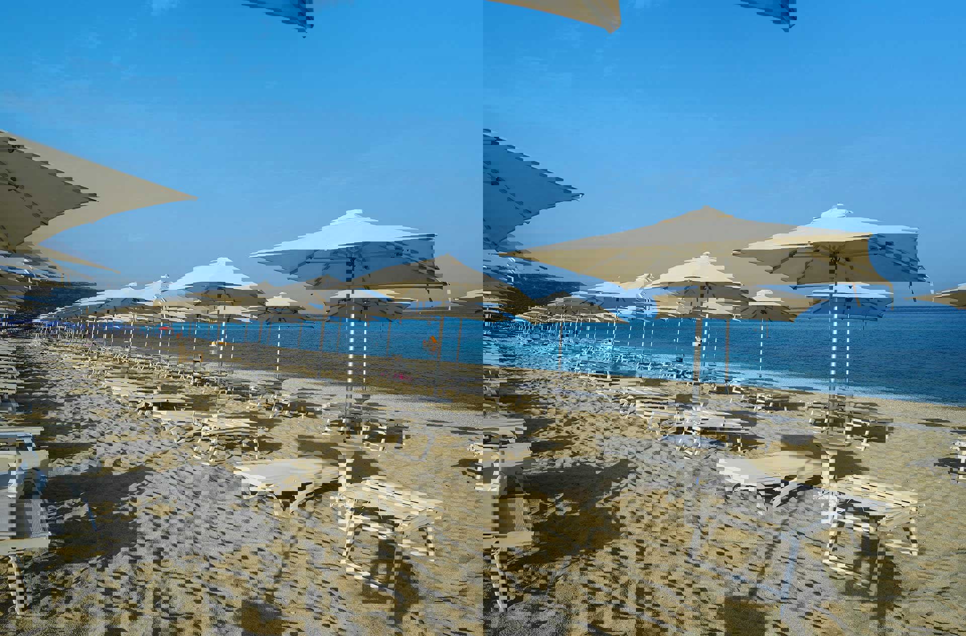 Privat sandstrand: i varje rum ingår 1 parasoll och 2 solstolar