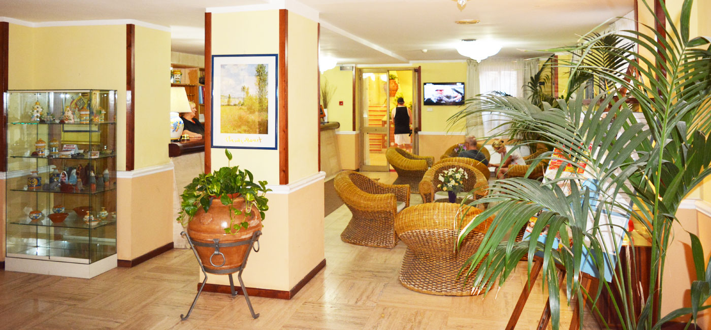 San Pietro hotell ligger vid strandpromenaden och det är också anledningen till att hotellet blivit så populärt. Hotellet är av äldre datum, men har renoverats snyggt och har mysiga omgivningar. Hotellet är omgivet av flera hotell och med mysiga gator med shopping och restauranger, området andas atmosfär på kvällarna och ren avkoppling på dagarna.