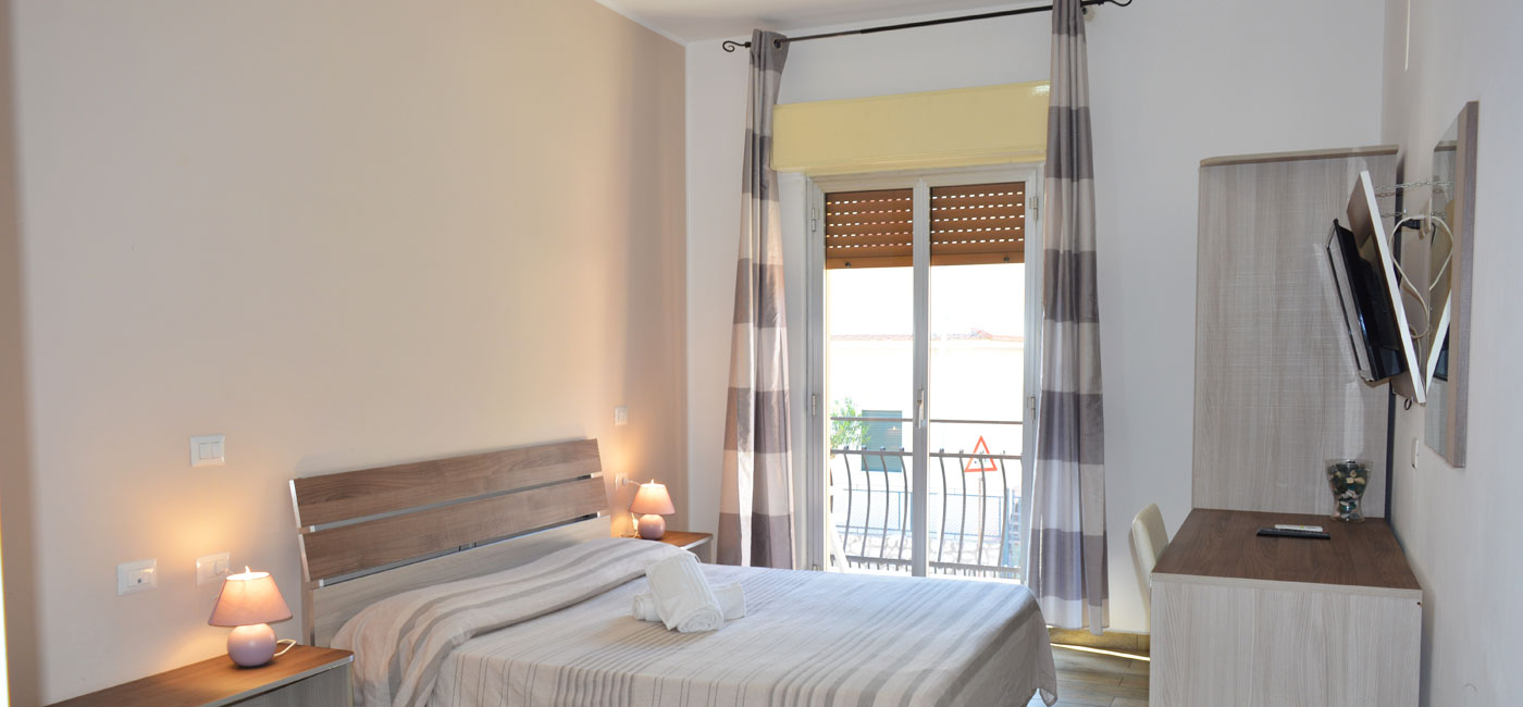 Hotellet har ett fantastiskt läge precis vid Mazzeo-stranden, i lugna omgivningar med gångavstånd till Letojanni och endast några minuter från Taorminas historiska centrum. Ett utmärkt hotell för både par och familjer som söker en avkopplande atmosfär med närhet till både stranden, upplevelser och stadsliv. Crismare Hotel har direkt tillgång till den vackra sandstranden i Mazzeo som sträcker sig nästan hela vägen till Taormina Mare. Här kan du njuta av lata dagar i solen och bad i det kristallklara havet – precis så som en medelhavssemester ska vara. Faciliteter som erbjuds inkluderar bland annat cykeluthyrning, en restaurang som serverar både buffé och à la carte samt en mysig bar med lättare snacks och uppfriskande drycker. Har du hyrbil under semestern erbjuds privat parkering mot avgift. Från hotellet är det enkelt att uppleva områdets höjdpunkter: Taorminas historiska centrum, Alcantara-dalen med sina imponerande raviner eller en utflykt till Etna, som ligger cirka 30 minuters bilresa bort. Boendet inkluderar en välsmakande frukostbuffé som ger en bra start på dagen. Turistskatt Observera! Var uppmärksam på att (paket)resor till Sicilien är med reguljärflyg, vilket innebär att ändrings- och avbeställningsvillkor avviker från villkoren för resor med charterflyg – se Amisols resevillkor. Avstånd Strand/Pool Barn Internet Restauranger/Barer Aktiviteter Övrigt Modern inredning i ljusa färger. Standardrum för 2–3 personer Enkelrum på förfrågan Faciliteter (alla rum) Boendet på Crismare Hotel inkluderar frukost som serveras som buffé. Öppettider för restaurang och bar meddelas vid incheckning. Restaurang Frukost (buffé)