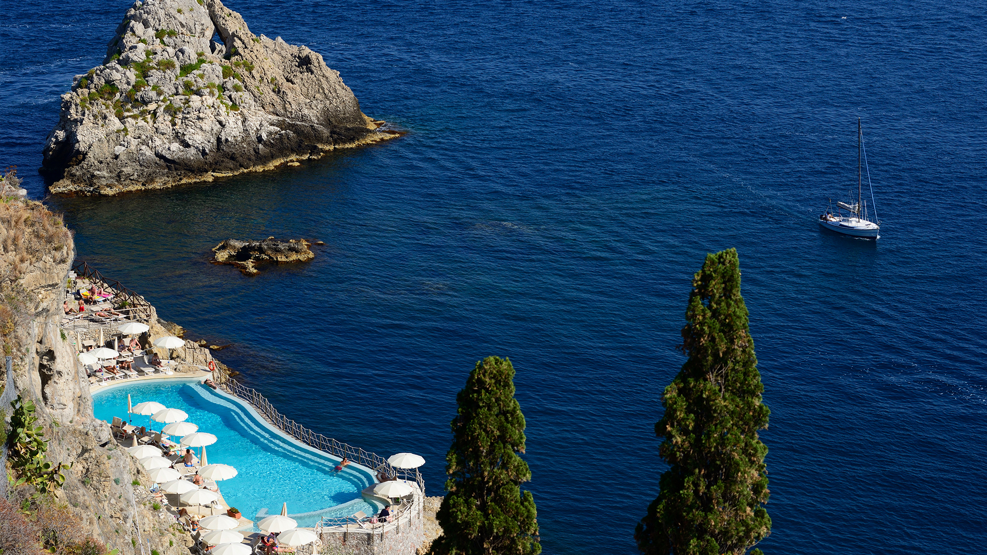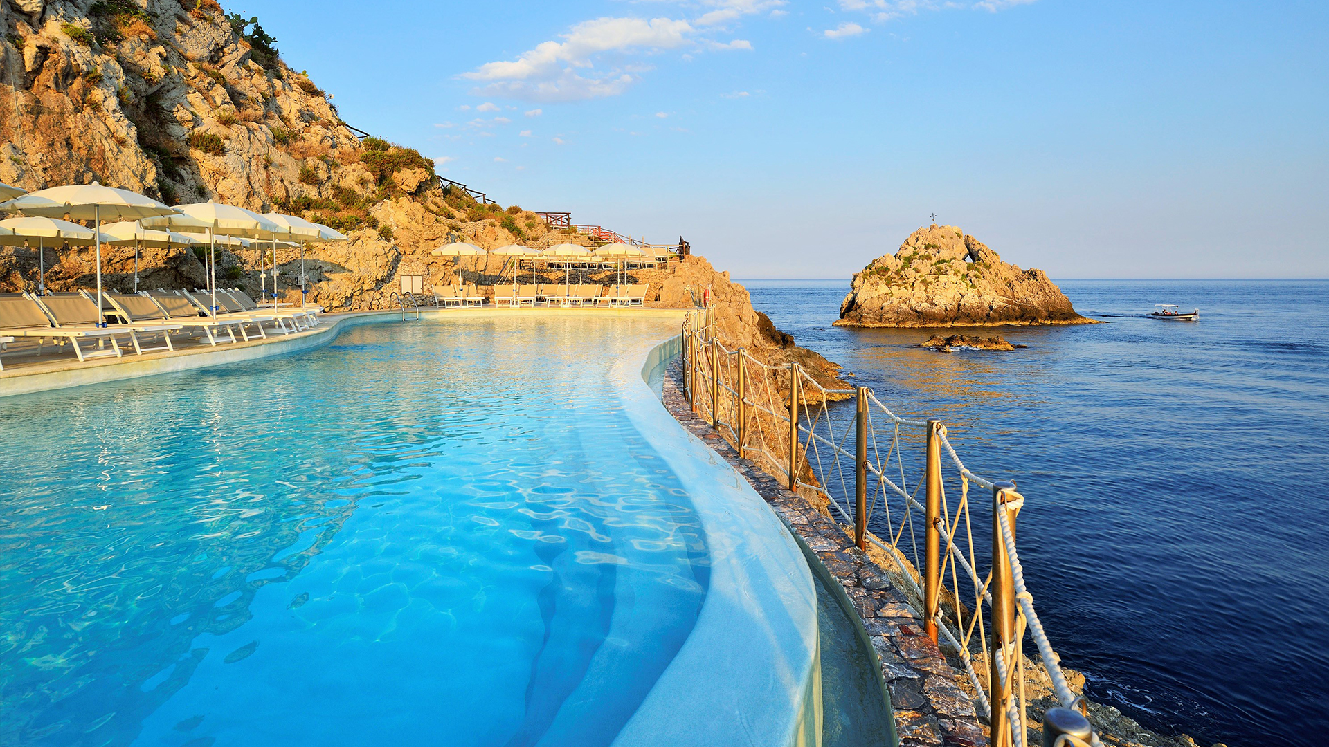 Hotel Capotaormina är ett vackert hotell med god standard och ett avskilt läge mot havet. Hotellet ligger i fickan på en klippa och du har direkt tillgång till den privata stranden, som du enkelt når via en linbana.