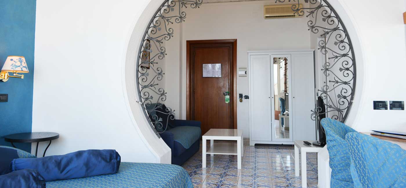 Vello d’Oro hotel har sit helt eget særpræg og syder af sydlandsk stemning. Hotellet har en meget traditionel indretning med en masse sjove og anderledes kunst på vægge og skulpturer.