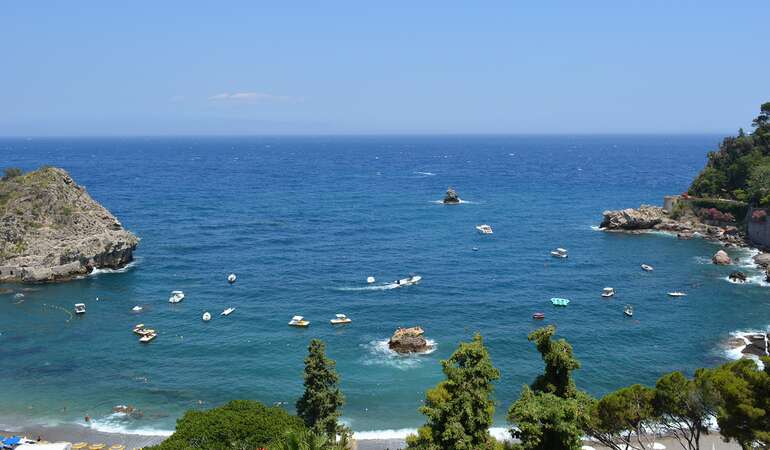 Giardini-Naxos är en mysig semesterort på Sicilien som har vuxit från en liten fiskeby på 70-talet till en liten men blomstrande destination. Den gamla fiskehamnen levererar fisk i en livlig atmosfär som tar dig tillbaka i tiden. Här får du en känsla för det sicilianska vardagslivet och kan njuta av soliga dagar på den långa, familjevänliga stranden. Det är här solen går upp över havet och börjar sin resa över himlen.