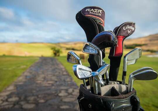 Buggies, el-trolleys och golfset måste förhandsbokas.