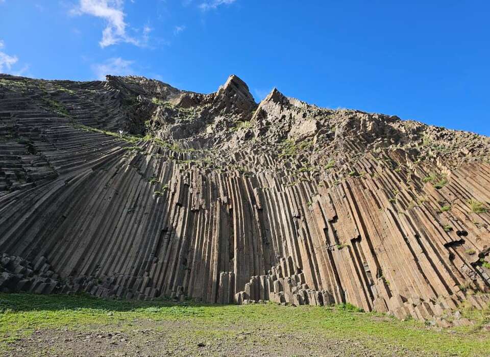 Vi går från Hotel Vila Baleira mot berget Pico de Ana Ferreira, som är känt för ett helt extraordinärt bergfenomen. Det består av olika prismatiska pelare som har bildats av lava från den tid då berget skapades av en underjordisk vulkan för flera miljoner år sedan. Vi kommer att gå cirka 200 meter upp i berget, och vi kommer därför att få en fantastisk utsikt över bland annat den berömda golfbanan i Porto Santo.